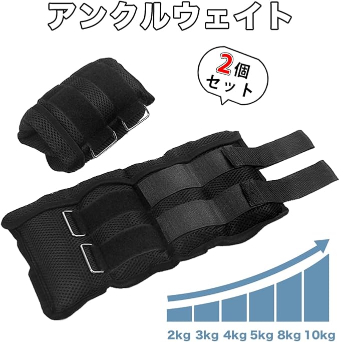 RAKU アンクルウェイト 重さ調整可能 5つ袋調節 2個入セット合計 2 kg 3 kg 4 kg 5 kg 8 kg 10 kg可選 筋トレ ウォーキング ダイエット エクササイズ 体幹トレーニング 通気性よい 耐久性手足両用 洗濯可 リストウェイト リスト