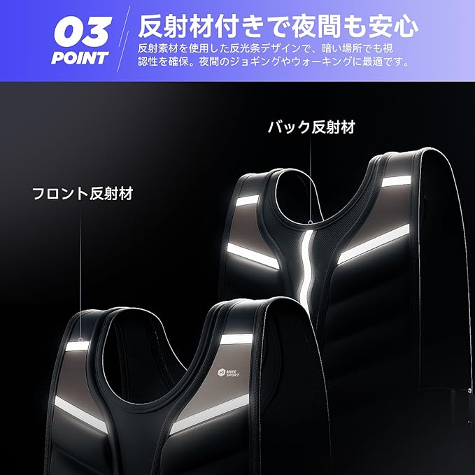 MIKE SPORT ウエイトベスト 重り ベスト トレーニング ベスト 加重ベスト 10LB/ 15LB/ 20LB 超快適 夜間安全反射 おもり 筋トレ ジャケット 体につける重り