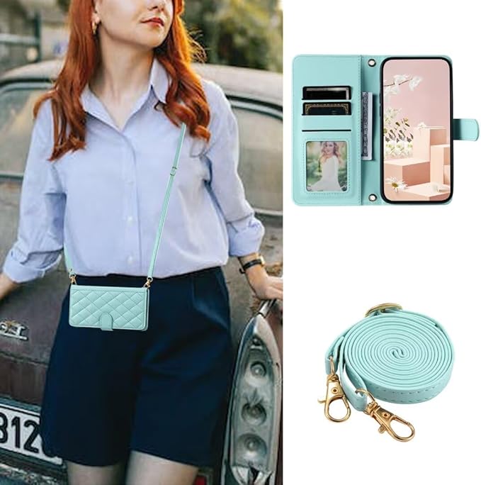 Xiaomi POCO F7 Pro ケース 手帳型 xiaomi poco F7 pro カバー 手帳型 ストラップ付 エレガントで ある POCO F7 Pro カバー 【Mldjomid】 シャオミ POCO F7プロ スマホケース PUレザー スタンド機能 カード収納 ストラップ付き チェック柄 刺繍 Xiaomi POCO F7 Pro 6.67インチ ケース 財布型-ライトグリーン