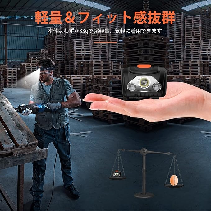 【軽量&フィット感】ABS素材で作られており、本体の重量はわずか33gで、頭に着用して圧力がかからず、重さもほとんど感じられません。また、ソフトベルトを採用され、夜釣りなどの場合は長時間装着しても首にストレスを与えません。登山、ランニング、釣りなどでのアウトドア活動に大活躍します。
