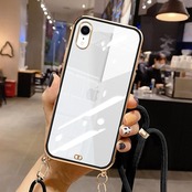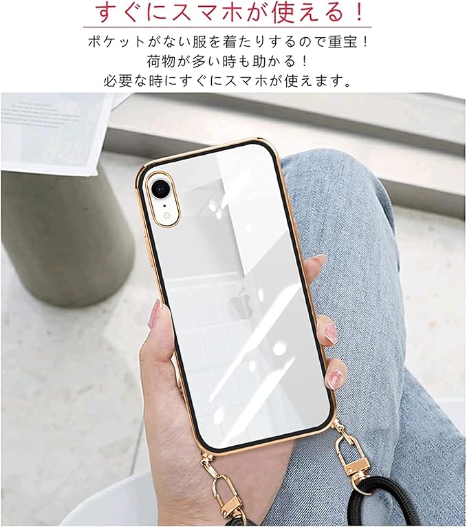 iPhone XR 用 ケース ショルダー クリア TPU いphoneXR スマホケース カバー 肩掛け 首掛け 斜めかけケース 可愛い かわいい 韓国 透明 薄型 耐衝撃 アイフォンXR(ブラック)