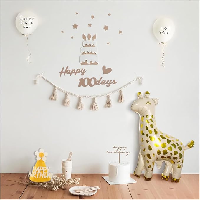 誕生日 飾り 可愛いシンプル 誕生日 飾り付け セット 壁に飾る用のhappy birthdayフェルト生地バナー ハーフバースデー 1歳 100日祝い 女の子 男の子 ハッピーバースデー 飾り キリン バルーン ケーキトッパー タッセル タペストリー バースデー 飾り 大人 写真背景 子供 飾り お祝い Birthday Party Decorations (100日祝い)