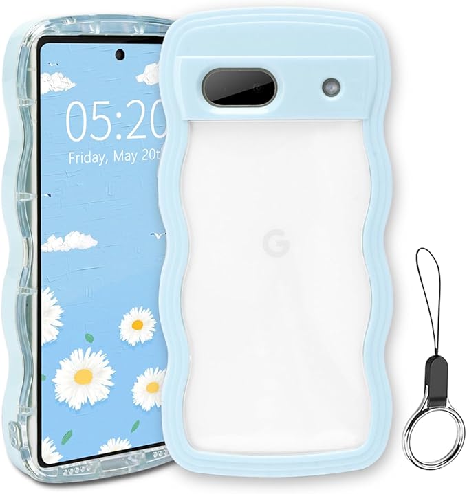 Google Pixel 8 ケース クリア ウェーブ ピクセル 8 TPU波状フレーム うねうね グーグル ピクセル8 滑り止め スマホケースウェーブ デザイン 手にフィット 韓国 可愛い 女子向け 透明 ケースカバー 人気 落下防止 耐衝撃 ストラップホール付き グーグルピクセル8 なみなみ ワイヤレス充電対応(Google Pixel 8-ブルー)