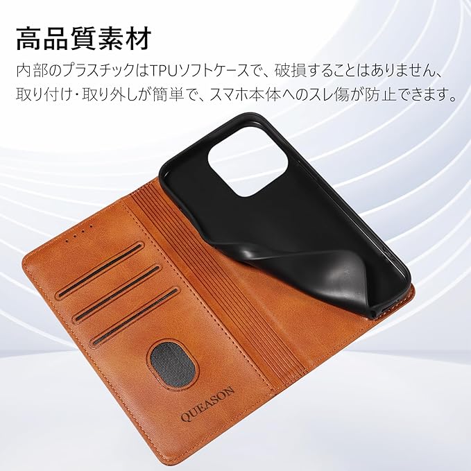 【多重保護】スマホケース iphone 14の四隅にラウンド処理がされており、衝撃吸収機能あり。内部のプラスチックはTPUソフトケースで、破損することはありません、取り付け・取り外しが簡単で、スマホ本体へのスレ傷が防止できます、衝撃から本体を360 保護します。使われているマグネット式の設計により、スマートフォンをしっかり固定できます、開閉簡単。