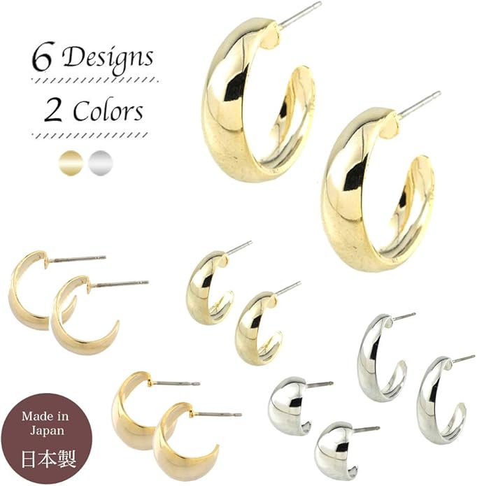 [ジュエリーショップエム] 日本製 G型 スタッド フープピアス チタンポスト ピアス シンプル レディース 金属アレルギー対応 シルバー Dタイプ