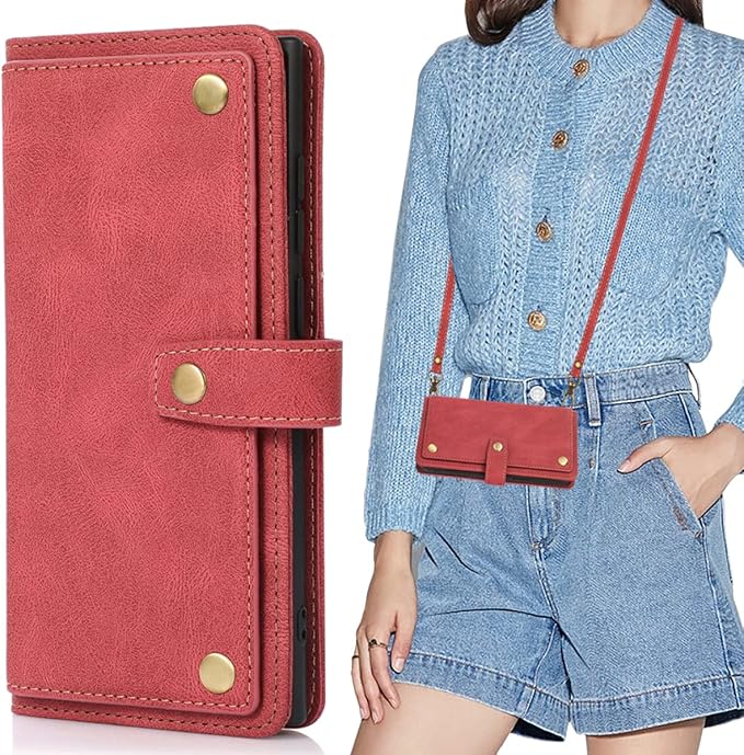 Galaxy Note 20 Ultra 対応 スマホ ケース ギャラクシー Note20 Ultra 肩掛け 首かけ 斜めがけ ショルダー 手帳型ケース Samsung Note20ultra PU皮革携帯カバー 大容量 9枚のカードを収納 横置きスタンド機能 サムスン ノート 20Ultra note20u ウルトラ 財布型ケース 耐衝撃 レディース メンズ(赤)
