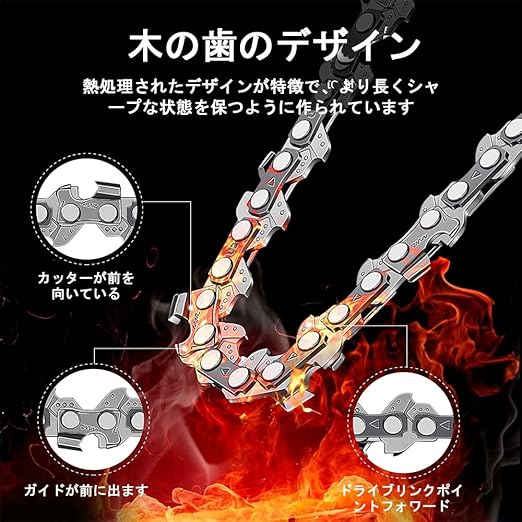【先の尖った歯】:先のとがった耐摩耗性の歯車の歯を備えた、より効率的かつ高速に切断します。高硬度のカービングチェーンは壊れにくいです。耐久性があり実用的であるため、便利で時間を節約できます。摩耗とチェーンの伸びが少ないということは、チェーンの張力調整が少ないことを意味します。