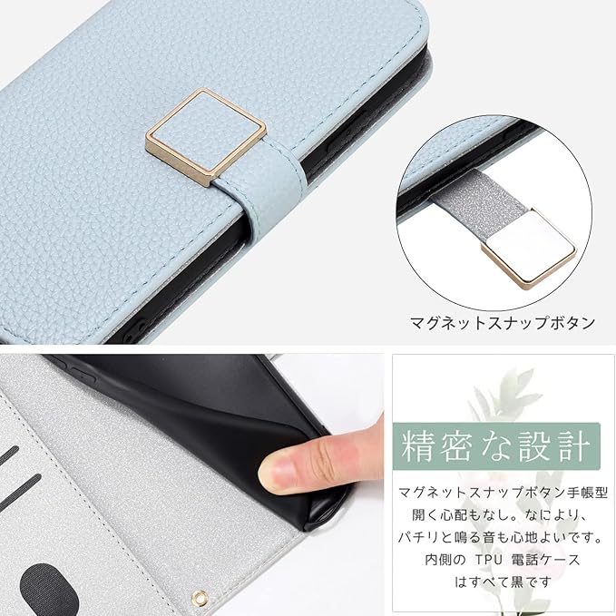 【耐衝撃性】耐熱性と柔軟性を誇るPUレザーから作られていて、滑りにくく、指紋、油分などもつきにくく、手帳型ならではの全面保護機能でディスプレイはもちろん、背面もしっかりガードします。さらにカメラレンズ保護構造でスマホ本体を傷から360度しっかり保護してくれます。