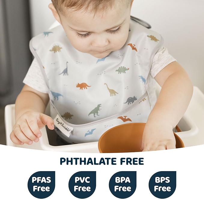 [タイニートゥインクル] イージービブ3枚セット 【日本正規品】 6~24ヵ月 畳めるスナップボタン付き 食事用エプロン 離乳食エプロン 保育園エプロン 防水 洗濯機OK TT-EB3-B8 Dino/Olive/Charcoal
