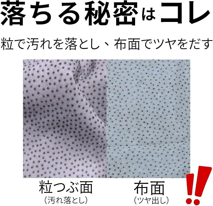 *不織布に特殊技術で配置した小さな粒の摩擦力で頑固な汚れを除去します。