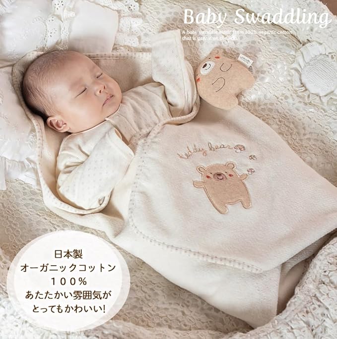 日本製 オーガニックコットン きのことくまのアフガン おくるみ アモローサマンマ 新生児 ベビー用品 オクルミ 出産祝い 出産準備品