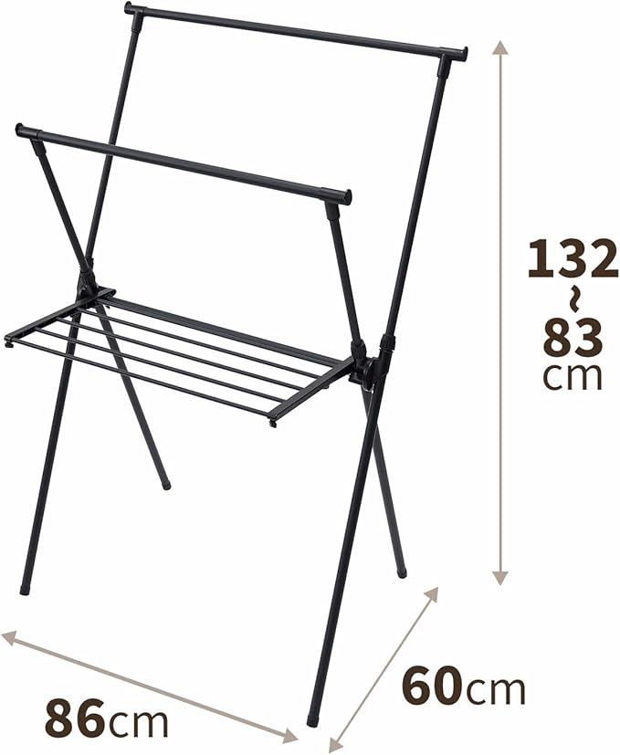 天馬(Tenma) 出しっぱなしでもスタイリッシュに決まる室内物干し 軽くて丈夫 洗濯 部屋干し ブラック物干し 室内物干しX型 【カラー マットブラック】 【型番 PSBK-04】 【サイズ 幅86 奥行60 高さ83~132cm】