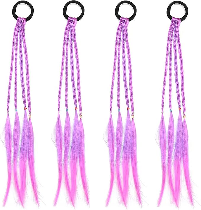 SATPULOT ウィッグ エクステ ヘアエクステ 三つ編み 編み込み 子供 グラデーション ポニーテール つけ毛 カラフル ウィッグ ポイントウィッグ キッズ エクステンション ヘアエクステ ヒップホップ カラフル 髪の毛 付け髪 ワンタッチ キッズ ダンス 発表会 簡単装着 2個セット ((4個セット)グラデーションパープルローズレッド)