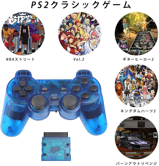 Fancyan PS2 用 ワイヤレスコントローラー DUAL SHOCK2 ゲームパット 互換対応 日本語説明書 (透明ブルー)