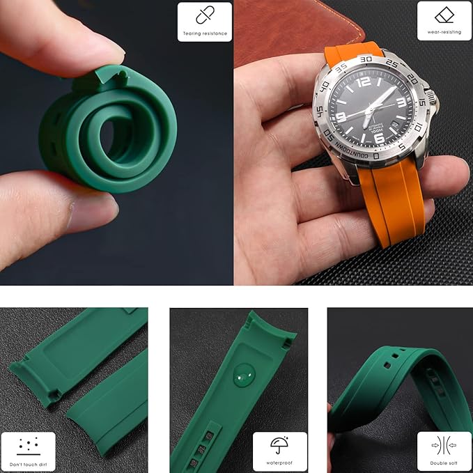 丸い文字盤を備えたほとんどの時計ケースに適した、丸い端を持つ特別なユニークなシリコンストラップ。 20mm、22mm幅のラグがあり、黒、青、オレンジ、灰色、緑、赤、オレンジなどのマルチカラーで、ほとんどの従来型またはスマートウォッチに適しています(正方形または特殊なラグには適していません)。