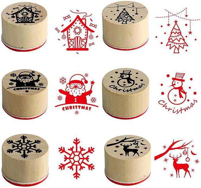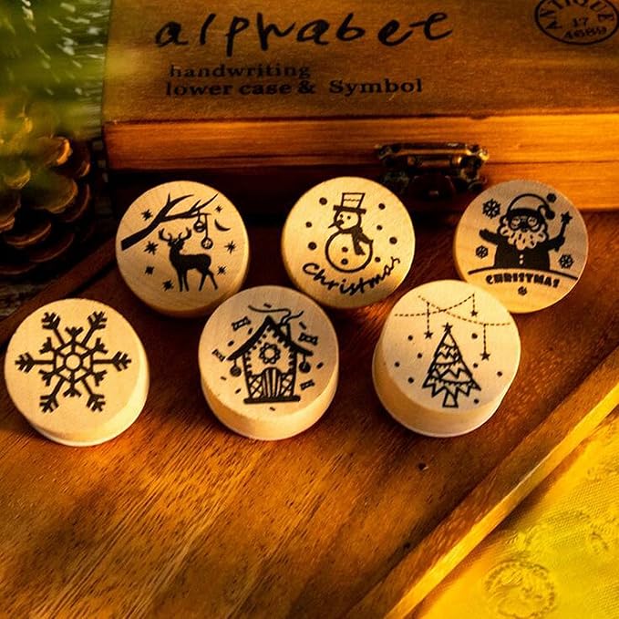 【LEISURE CLUB】木製スタンプ 6コセット 花柄模様 ゴム印 手紙用 グリーティングカード DIY デコレーション クリスマスツリー サンタクロース トナカイ ツリー 雪の結晶 雪だるま クリスマス 正月 成人の日 バレンタイン ホワイトデー 雛祭り タンプ