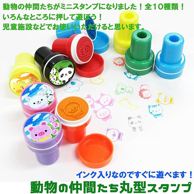 スタンプ 動物のなかま ミニ スタンプ インク入り 全10種類 合計10個セット (小容量 ご家庭 お楽しみ会 誕生日 幼児施設 向け) インク入り スタンプ アニマル 動物園 キャラクター 文房具 文具 ファンシー 文具 おもちゃ 玩具 ハンコ はんこ チェックスタンプ ホビーお絵描き ごほうび プレゼント 景品 お祭り 縁日 子供 女の子 男の子