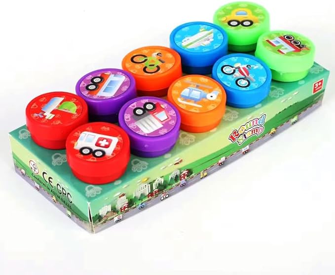 SensaBliss スタンプ かわいい 10個セット 縁日 景品 夏祭り子供 景品 飛行機 オートバイ 乗り物 おもちゃ ミニスタンプ 女の子 男の子 文房具 文具 おもちゃ はんこ インク付き 可愛い 円形 玩具 誕生日 お祭り ごほうび プレゼント