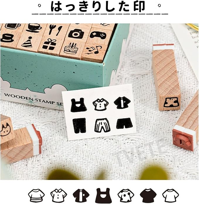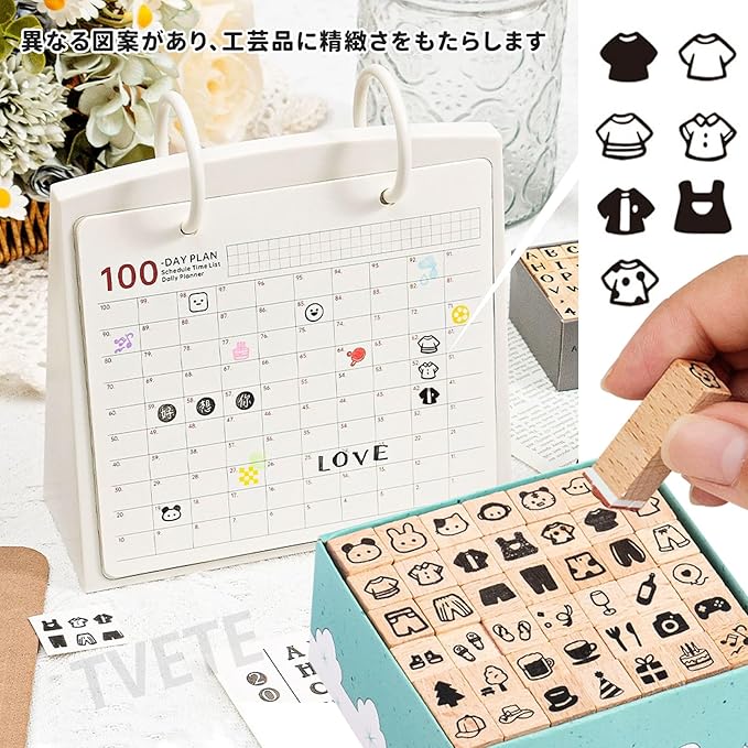 【商品内容】:スタンプセットには10*10*34MMの木製印鑑が42枚入っています。