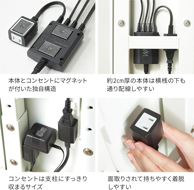 悩まず配線。本体やコンセントにマグネットが付いた独自構造の電源タップ。