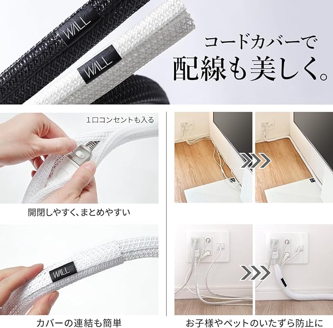 WALLを美しく設置する。大人気オプションセット!マグネットスマート電源タップとコードカバーのセットで、面倒な配線をすべてスマート。