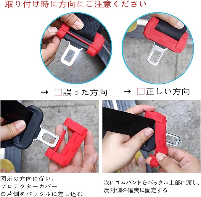 シートベルトカバー,シリコン製 タングプレートカバー 2個 + シリコン製シートベルトバックルキャッチカバー 2個
