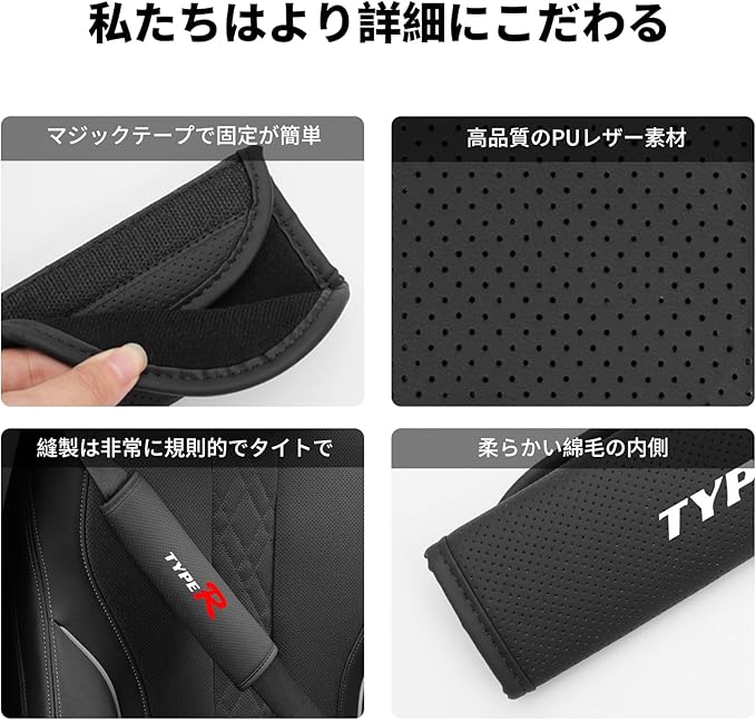 タイプR シートベルトカバー Type R 新型 タイプR 専用 アクセサリー カスタム 内装パーツ シートベルトパッド 快適で 肩と首の保護 ショルダー 肩当てパッド PUレザー 23cm 車載便利グッズ 車用品 2枚セット(ブラック)