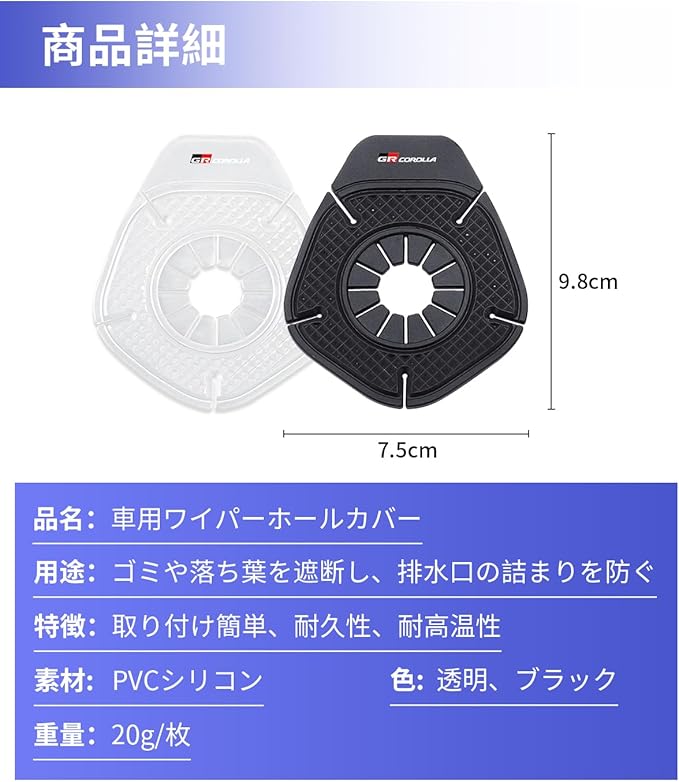 【専用ロゴ付き・違和感のないデサイン】このワイパーホールカバーは GR COROLLA 専用ロゴが付き、シンプルなデザインで違和感なく愛車に馴染み、より清潔で洗練された見た目にします。このワイパーホール保護パッドはご愛車を飾るのにおすすめのグッズで、家族や友人へのプレゼントとしても最適です。【適用車種】GR カローラ 14系 RZ グレード対応します。