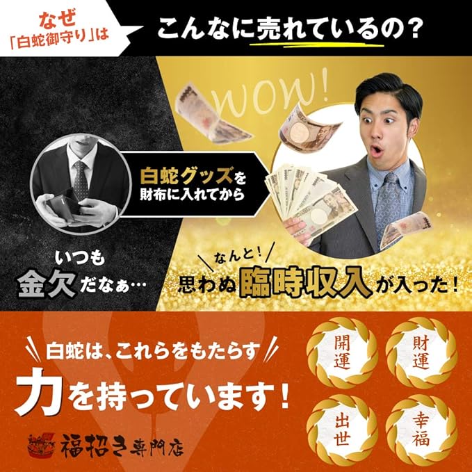 帯は実際に銀行で使われている本物です。その上に金箔が散りばめらています。白蛇抜け殻もついていますので金運アップが期待できます。