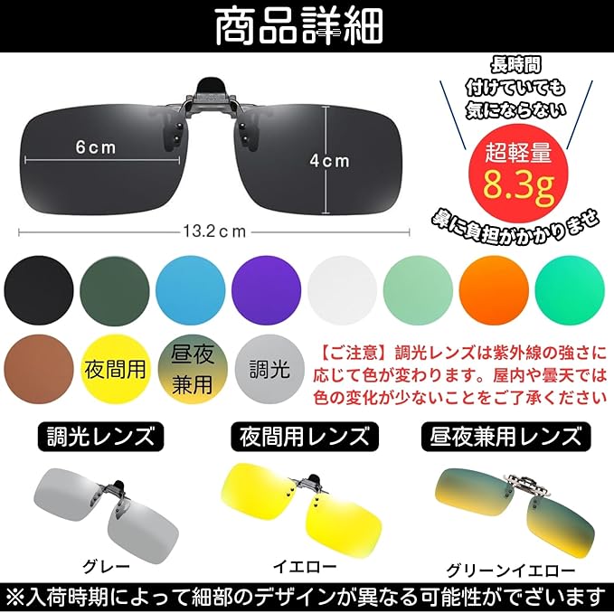【メガネの上からスマート装着】普段の眼鏡にそのまま取り付けられるクリップオンタイプ。ワンタッチで簡単に着脱できるうえ、跳ね上げ式デザインなので必要な時だけ視界を切り替え可能。運転中や屋外活動でもスムーズに使用できます。