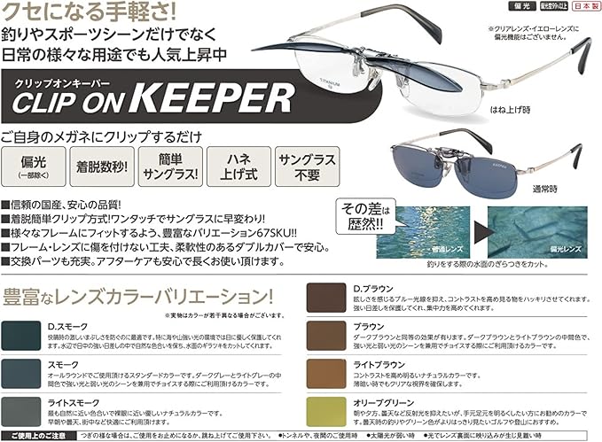 メイガン(Meigan)サングラス メガネの上から クリップオン キーパー 跳ね上げ UVカット & ギラツキ防止 偏光レンズ 運転用 スモーク オーバルM KEEPER 日本製 9330-02