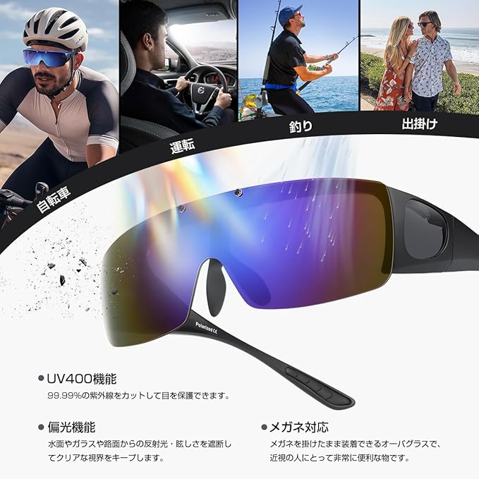 [Br'Guras] オーバーグラス 偏光サングラス メガネをかけたまま対応のサングラス 跳ね上げ式 UV400 紫外線カット サイクリング、釣り、ランニング、野球 格好いいサングラス
