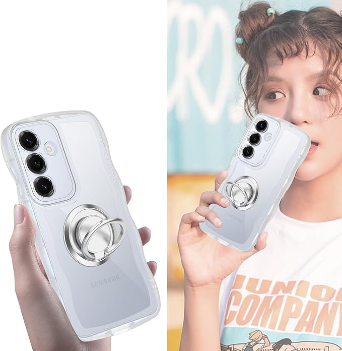 Galaxy A53 5G SC-53C SCG15 ケース クリア ウェーブ リング付き TPU波状のバンパー 透明 スマホケース かわいい うねうね ギャラクシー A53 ウェーブ デザイン 可愛い 韓国 女性用 薄型 人気 おしゃれ 耐衝撃 ストラップホール付き(クリア)