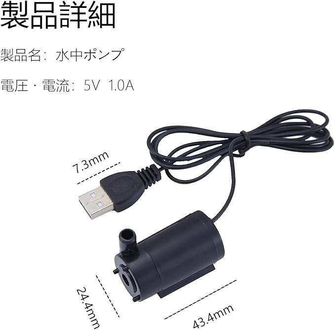 水族館用噴水ポンプは、使いやすいUSB電源に接続するためのUSBケーブルが付属しています。