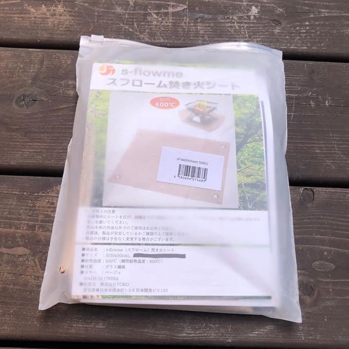 【安全・安心の耐熱性能!瞬間耐熱温度800℃】耐熱性の高いガラス繊維の特殊な生地『グラスファイバー』を採用しております。燃える薪の温度は、一般的に250度から450度程度といわれています。※薪の種類や周囲の環境によって異なります。s-flowme(スフローム)TAKIBI SHEET(焚き火シート)は耐熱温度は500℃(瞬間耐熱温度は800℃)。放射熱や火の粉から地面や芝生などへのダメージを軽減します。【極厚仕様!丈夫で長く使用可能】ほつれない生地を使用している為、丈夫で長持ち!火の粉が付いてもチリチリにならず、縫い目もしっかりしている為、長くご使用頂けます。【ガラス繊維がチクチクしない】生地の表面は特殊な加工を施していますので、グラスファイバー独特のチクチク感を大幅に軽減しています。なめらかな手触りで、いつでも快適にご使用いただけます。※ガラス繊維生地を使用していますので、ご使用の際は手袋などの着用をお勧めいたします。※特にお肌の敏感な方やお子様のご使用をご注意ください。【柔らかい生地で収納に便利】生地は柔らかいので、焚火シートを折りたたんでコンパクトに収納することができます。