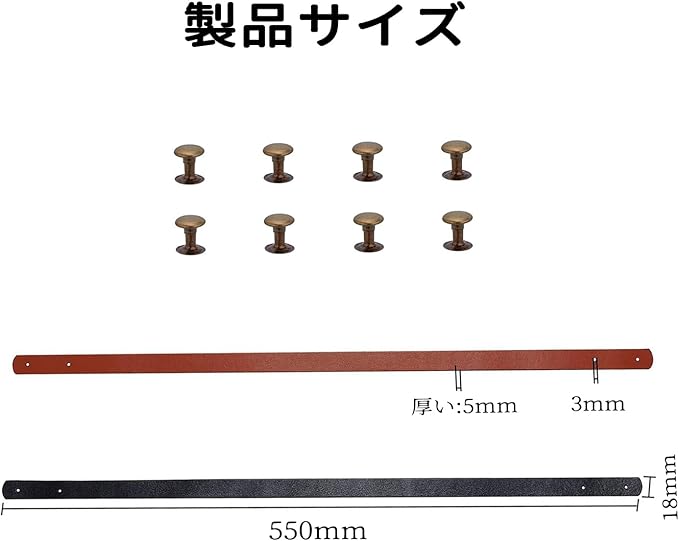 【商品仕様】:2枚入り、ブラック。長さは約55センチで、金色のネジが8セット付属しています。