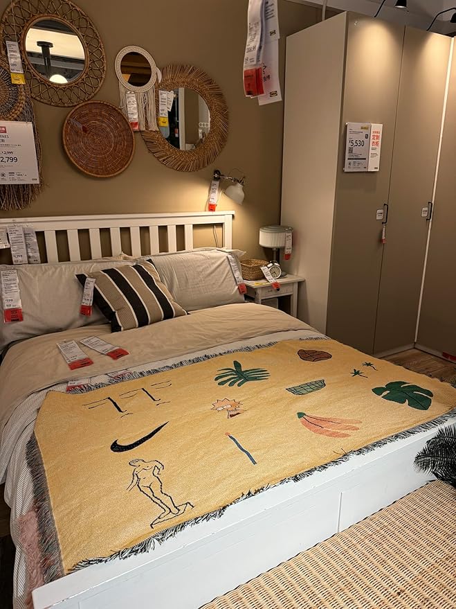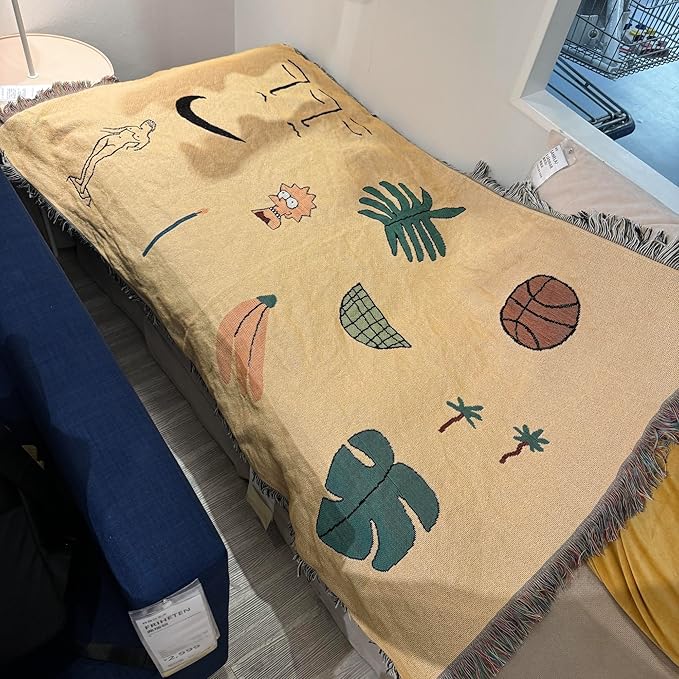 Peel Forest 面白い 柄 ,南国気分ベッドルーム インテリア おしゃれ ブランケット ,ラグ 北欧,ひざ掛け, ベッドカバー,イェロー (90X150cm)