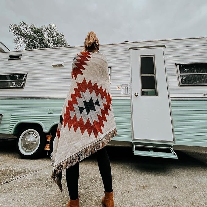 【おしゃれなデザイン】チェコのボヘミア地方の民族衣装に由来し、自由奔放な生活を送るジプシーのファッションや民族衣装を取り入れたスタイルを採用したブランケットは色もフリンジもジプシー人の放浪な感じを溢れられます。若者もお年寄りも好きな柄で、プレゼントととしては重宝になります。