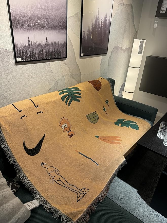 Peel Forest 面白い 柄 おしゃれ ブランケット シンプソンズ ラグ 北欧,ひざ掛け,イェロー (130X160cm)