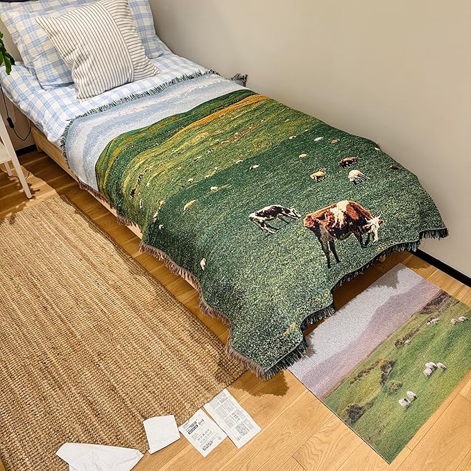 Peel Forest 牧草地 乳牛 柄, おしゃれ マルチカバー ブランケット ,ソファーカバー,洗濯可能 インテリア, ベッドカバー (130X160cm)