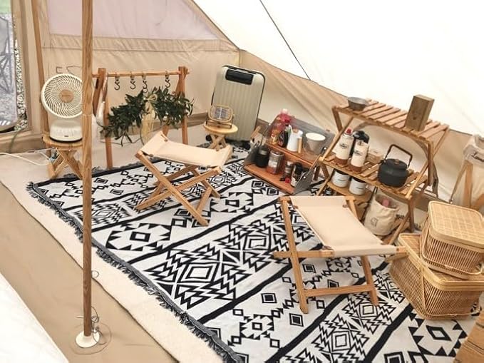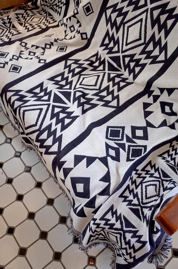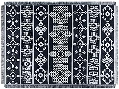 Peel Forest ,バンライフ・車中泊・キャンピングカー,キャンプ ブランケット アウトドア メキシカンラグ おしゃれ テント カバー 黒と白 130X180cm