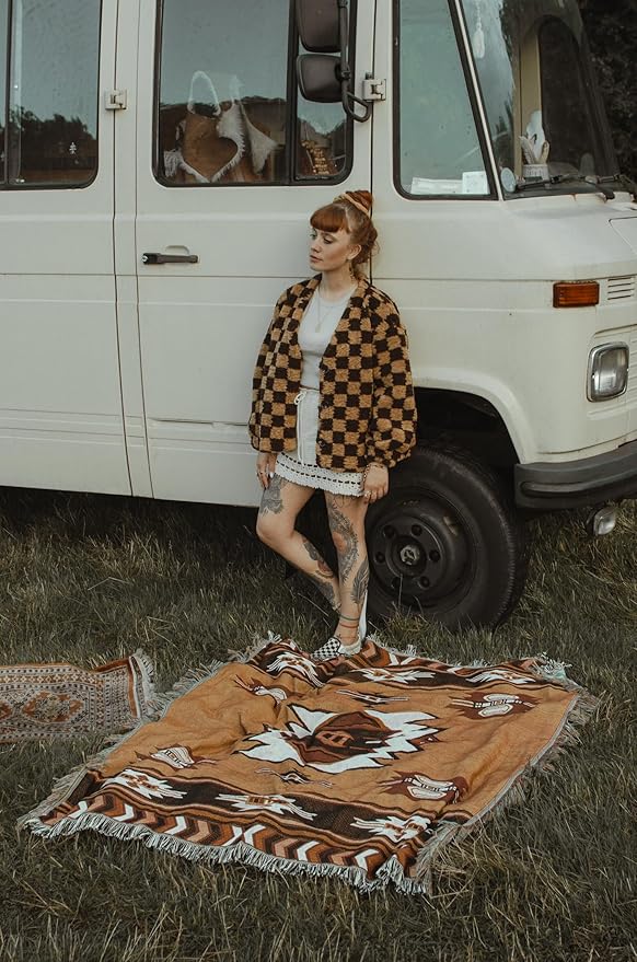 Peel Forest エルパソブランケット マルチカバーメキシカンラグ ネイティブ柄 オルテガ柄 キャンプラグ サドルブランケット 車中泊マット アウトドア バンライフ 130X160cm………