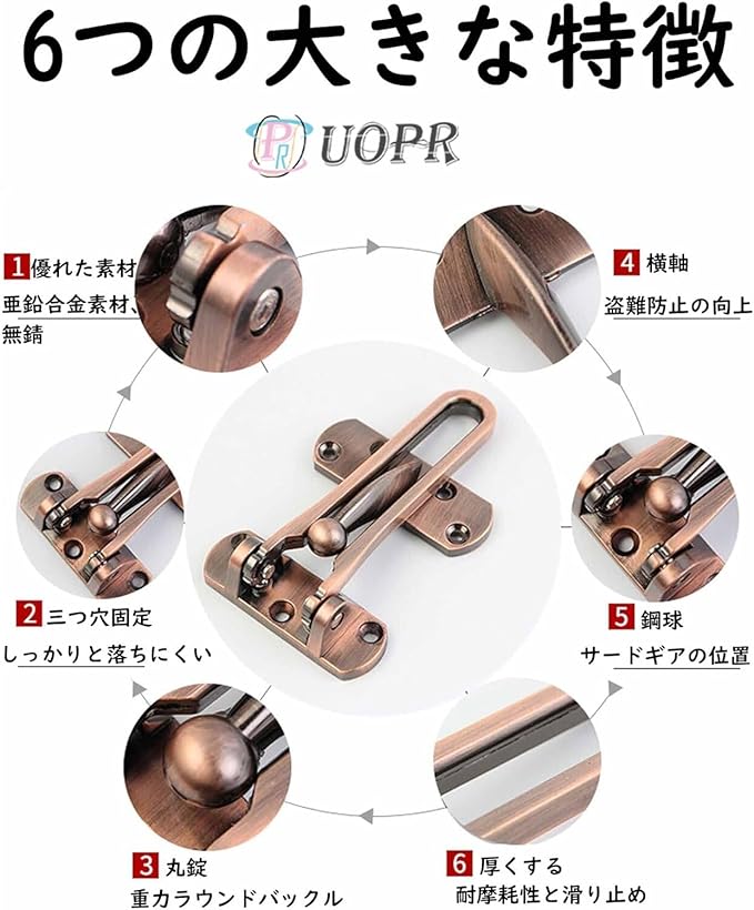 ドアガード 玄関 防犯 ドアロック ネジ付き 外開き用 ドアアーム 室内ドア 鍵 後付け 耐震用 扉 ロック 補助錠 ドア用金物 亜鉛合金製 ドアクローザー 内鍵 部屋鍵後付け 住宅 アパート ホテル 盗難防止 交換は簡単 取付け簡単 ゴールド