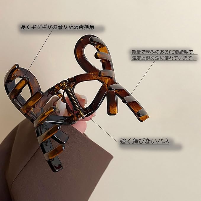 【仕様】パッケージ:1個;サイズ:約8*6cm;重さ:約25g;素材:強い錆びない合金バネ・PC樹脂;カラー:ブラック、ライトべっ甲、レッドブラウン。