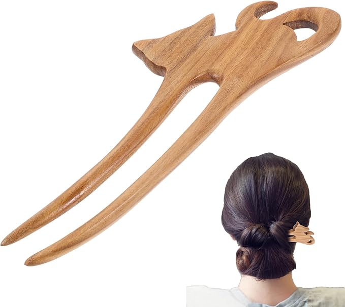 BESTOYARD かんざし 木製 ヘッドドレス 猫の形 髪飾り ヘッドドレス uピン 簪 和装アクセサリー シンプル 和装 浴衣 着物 ビンテージ ヘアアレンジ 1本