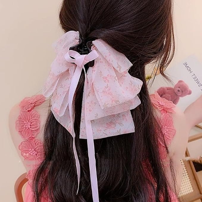 HAPVITAL フリル リボン バンスクリップ 大きめ 髪飾り可愛い ヘアクリップ 大人っぽい ヘアアクセサリー セット ヘアクリップ 髪留め ヘアアクセサリー クリップ バナナクリップ レディース用 おしゃれ 韓国風 オフィス 贈り物 (ピンクのドット柄)