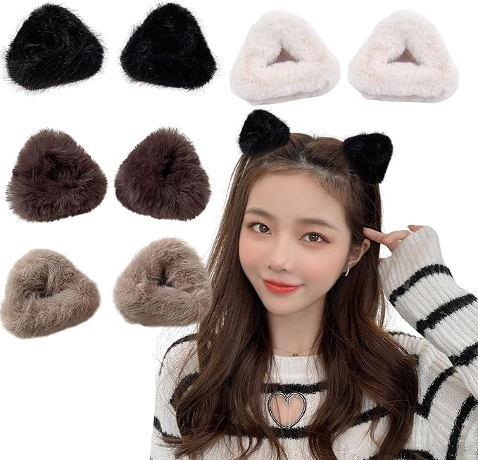 shefun 小さめ ヘアクロー 前髪クリップ ヘアクリップ ふわふわ 猫耳 8個セット 前髪 バンスクリップ 5cm ミニ レディース フランスクリップ 少女 メイド 髪留め ミニクリップ JP328