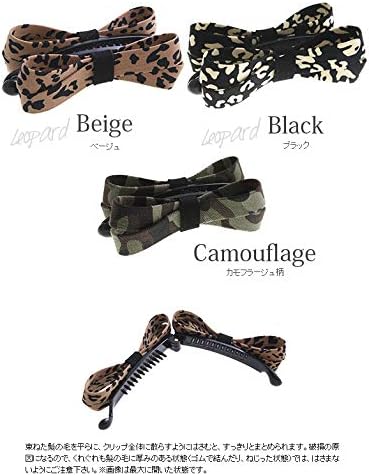 [ヴァンテーヌ] VINGTAINE アニマル柄 リボンバナナクリップ S レオパード柄 ワンポイント ヘアクリップ ヘアアクセサリー H-384-bk