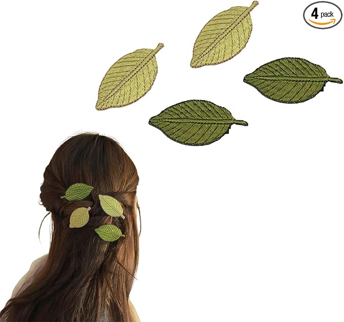 EZ PEACH クラシカル 葉 ヘアクリップ 刺繍 葉の形 ヘアピン 女の子 葉 ヘアバレッタ 前髪クリップ 女の子のヘアピン 蝶ヘアピン 可愛い かわいい 前髪 髪留め 髪飾り 女性 レディース パーティ 4点セット (緑+若葉色)