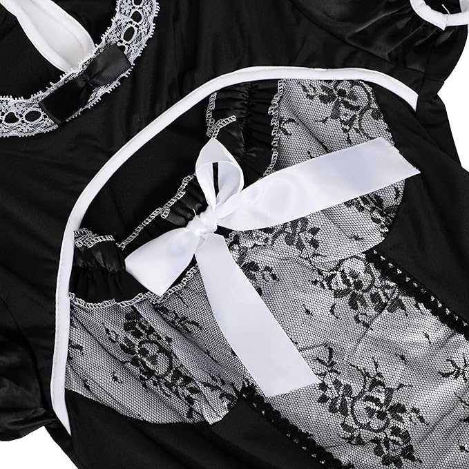 このセクシーなメイドコスチュームを着て、素敵で特別な夜を過ごしてみてはいかがでしょうか。レースやリボンをアクセントに使用し、セクシーだけではなく可愛らしさも演出します。